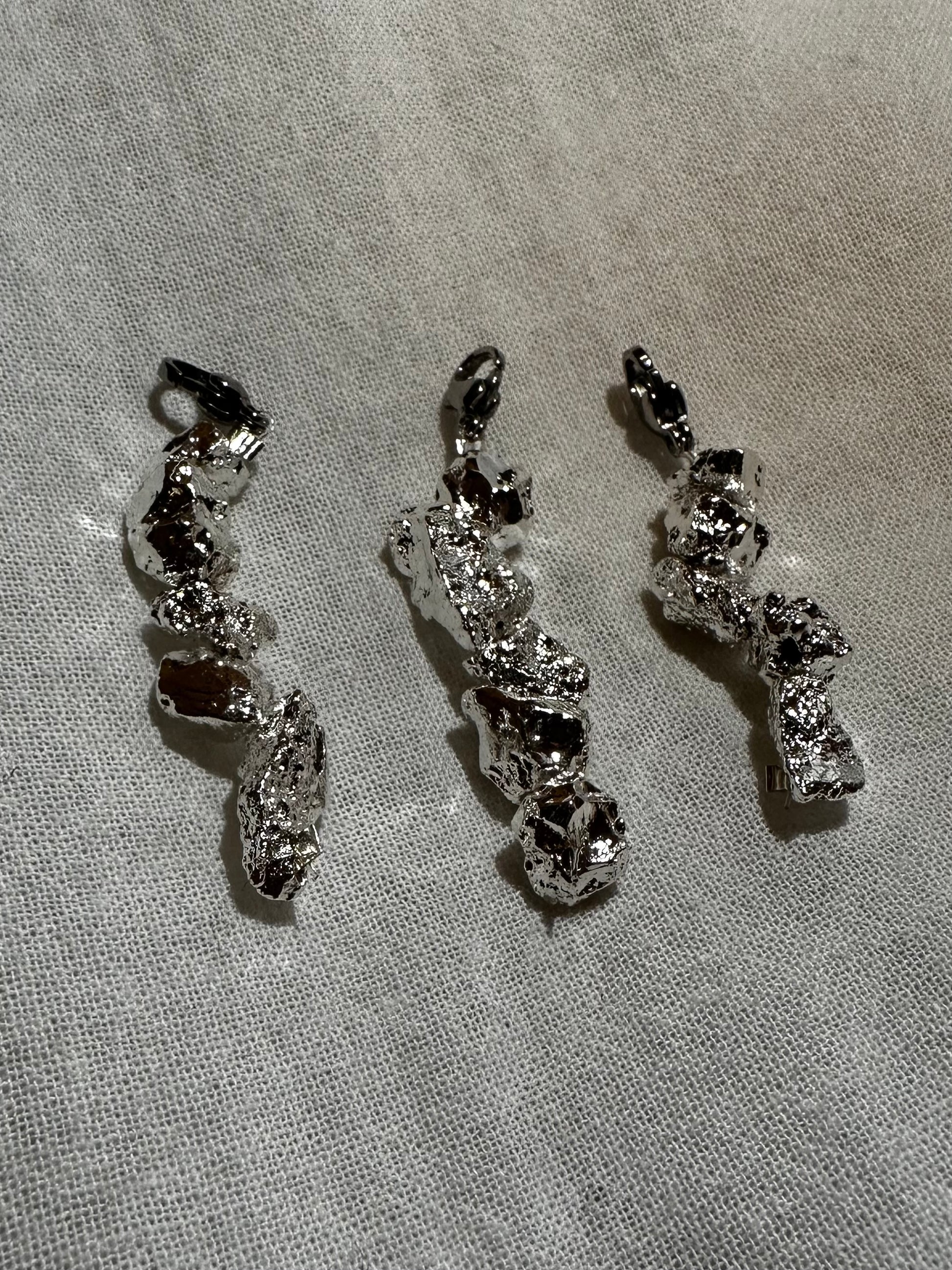 Verleihe deinen Zip-Hoodies, Jacken, Taschen oder jedem anderen Reißverschluss-Piece ein hochwertiges Upgrade: Die ORGANIC SILVER zip charms von CAEA STUDIO werden in Deutschland handgefertigt und bestehen aus fünf natürlich geformten, versilberten Natursteinen. Jedes Stück ist unique. Der robuste Edelstahl Verschluss sorgt für einen sicheren Halt und macht aus deinem Alltags-Item ein besonderes & individuelles Highlight. Perfekt als Accessoire, Geschenk oder stilvolles Detail für deinen Daily Look.